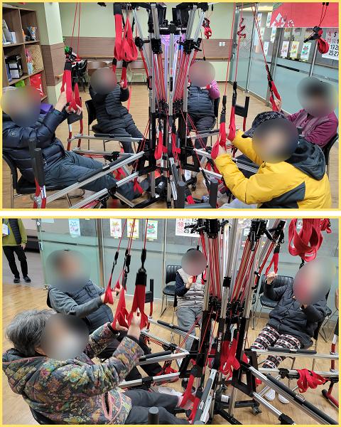 바디힐더를 이용해 운동 중이신 어르신들의 모습입니다.