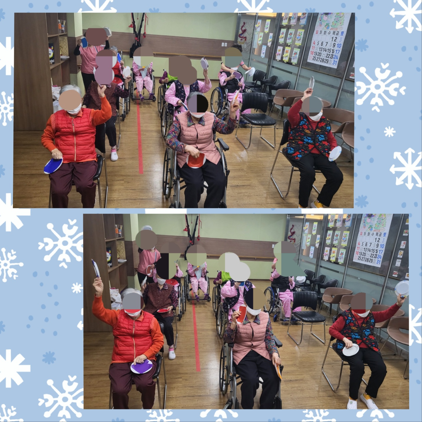 어르신들의 접시체조 프로그램 활동 모습입니다.