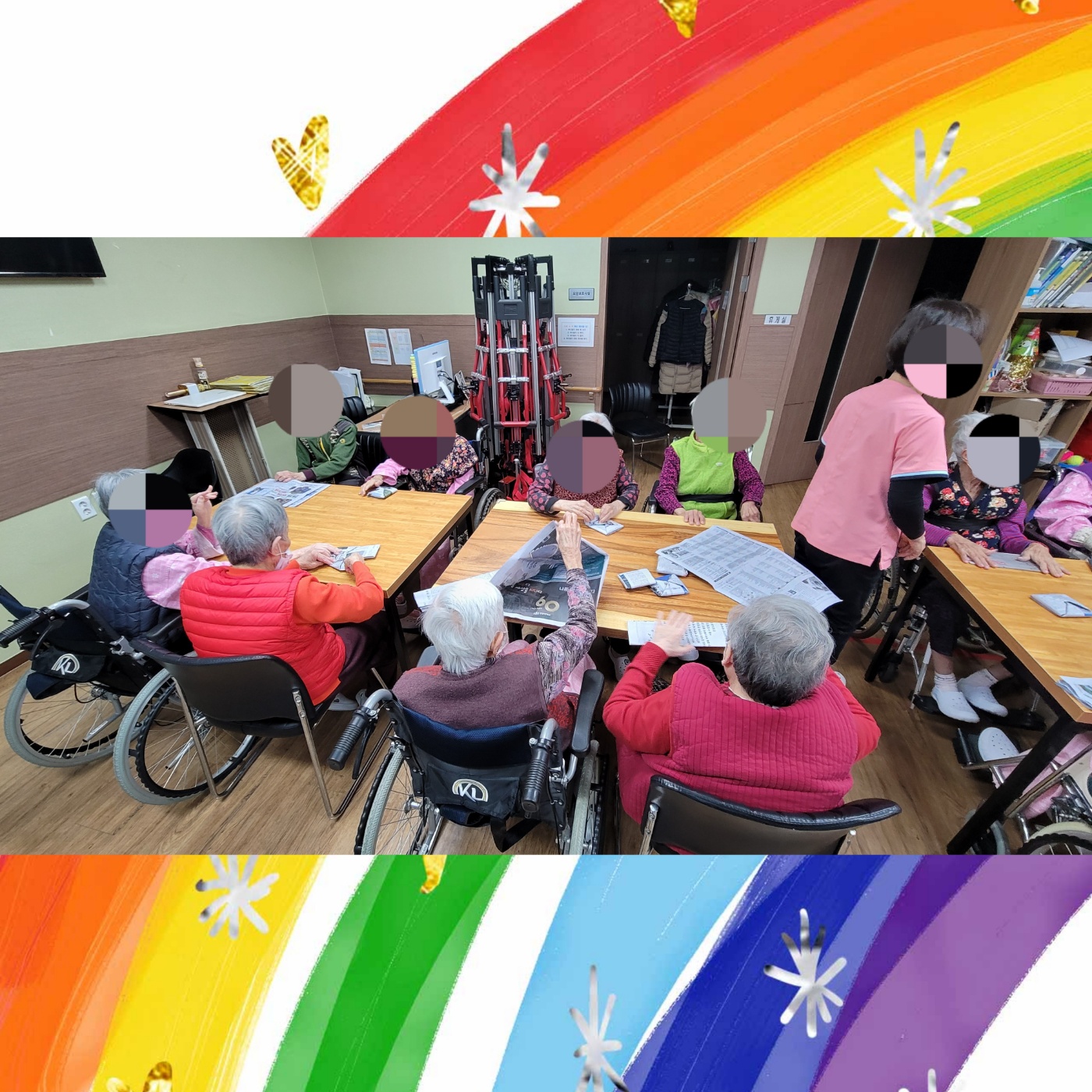어르신들의 딱지치기 프로그램 활동 모습입니다.