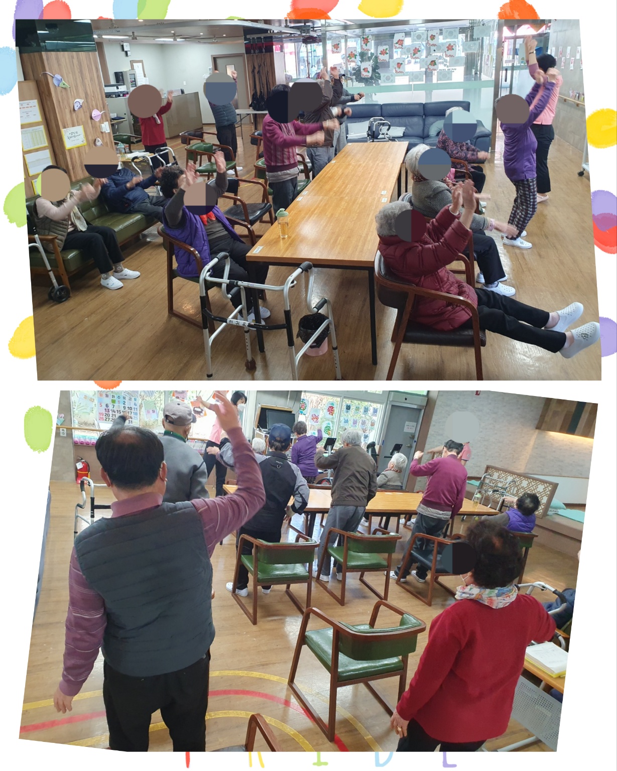 어르신들의 건강체조 프로그램 활동 모습입니다.