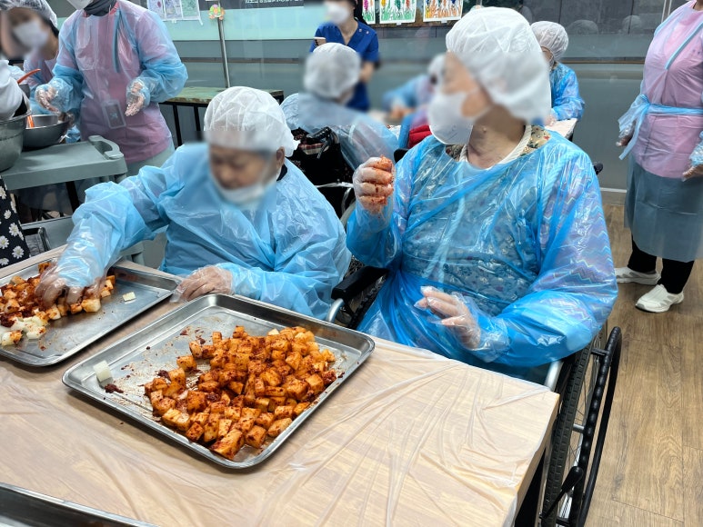 김장을 담그고 계시는 어르신들의 모습입니다.