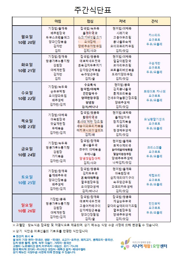 • 식단표