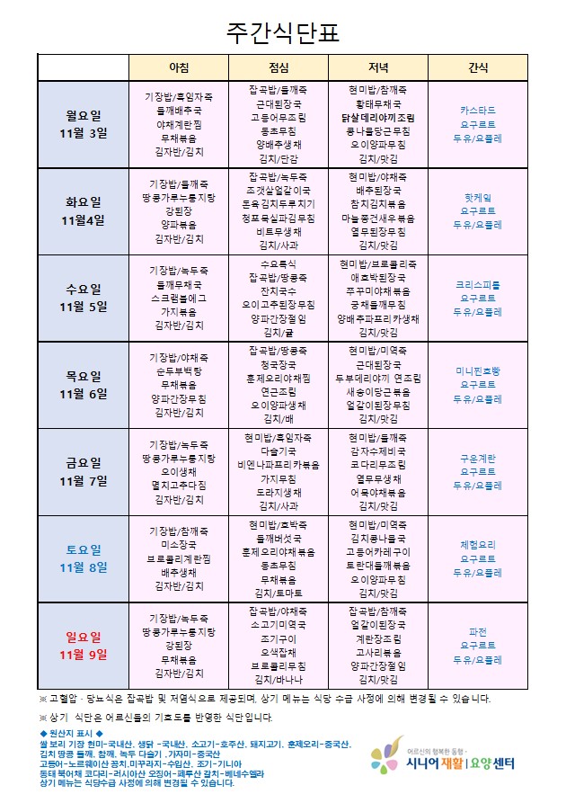 • 식단표