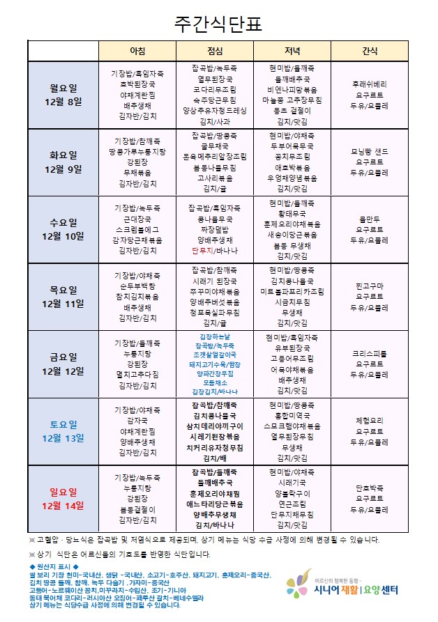 • 식단표