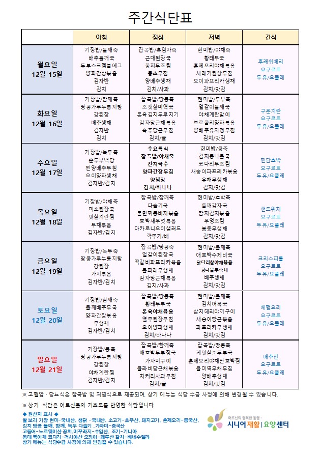 • 식단표