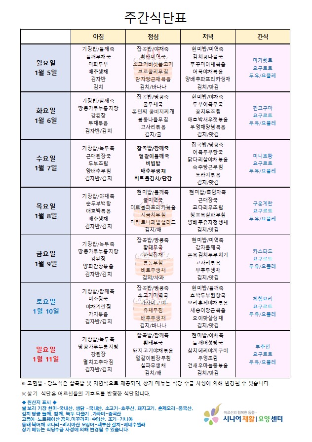• 식단표
