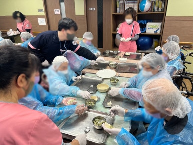 일상생활과 밀접한 프로그램 활동을 일상생활 잔존능력을 유지시킬 수 있고 만두를 빚으며 손가락 운동을 할 수 있으며 뇌 활동 기능을 유지하고 향상시킬 수 있습니다.