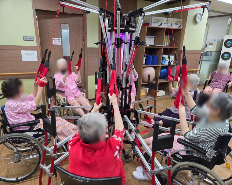 바디힐더는 근력운동과 재활운동에 효과적이며 탄성로프를 적용하여 유연성과 관절 통증에 도움을 주는 기구입니다. 또한 자체조명효과와 음악(트로트)을 들으며 즐겁게 운동을 임할 수 있는 효과적인 기구운동입니다.