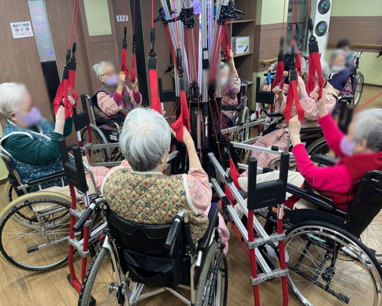 바디힐더는 근력운동과 재활운동에 효과적이며 탄성로프를 적용하여 유연성과 관절 통증에 도움을 주는 기구입니다. 또한 자체조명효과와 음악(트로트)을 들으며 즐겁게 운동을 임할 수 있는 효과적인 기구운동입니다.