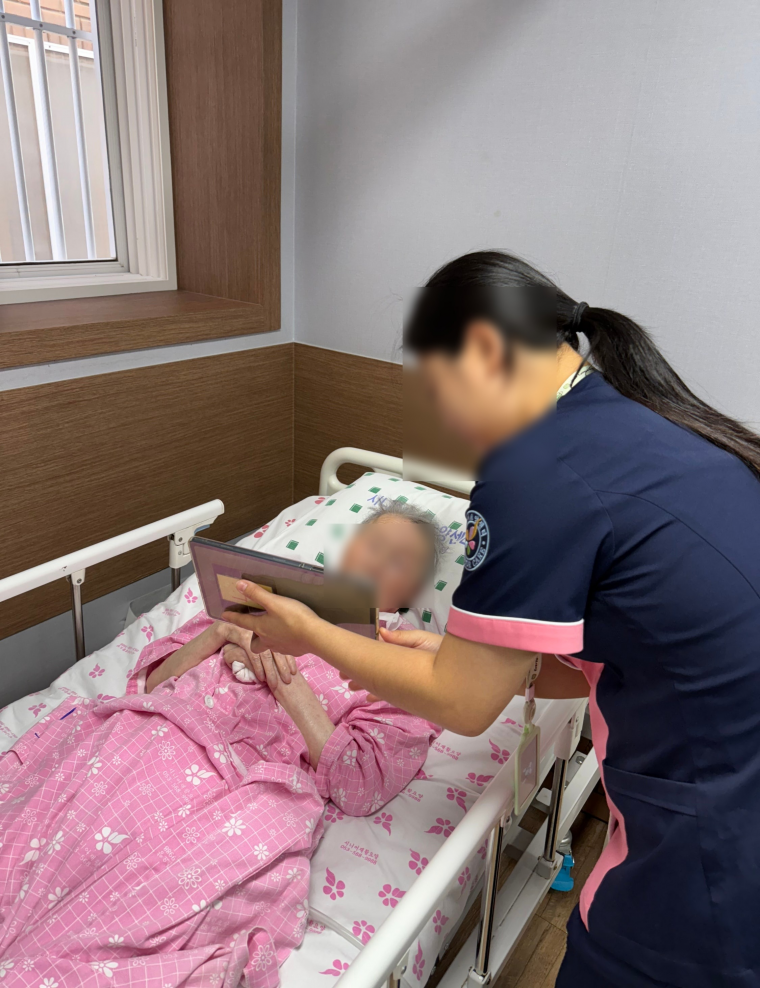거동이 불편하신 어르신들을 위해 생활실에 직접 가서 재미있는 전래동화를 읽어드리거나 태블릿으로 보여드리고 있습니다.