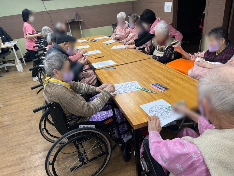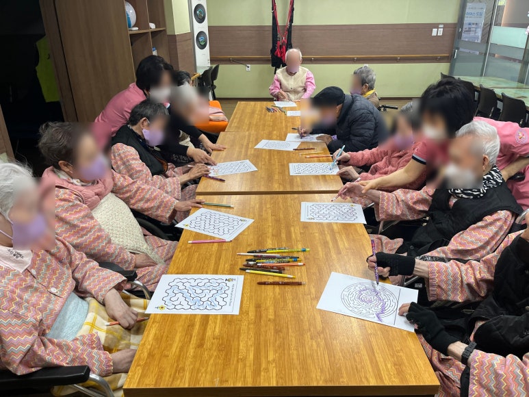 이번 주 첫 자체프로그램은 미로찾기 프로그램 입니다 미로를 완성했다는 성취감 향상에 기여하고 치매 예방 및 인지 훈련, 정서적 안정을 도모합니다.