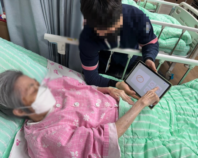 기억 언어 지각 사고 영역의 두뇌 훈련을 AI가 개인의 특성에 맞게 훈련을 합니다.프로그램실에서 인지프로그램을 진행하지만 거동이 불편하신 어르신들은 생활실로 복지팀이 이동하여 태블릿으로 진행하고 있습니다.