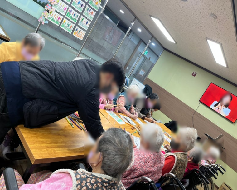 어르신들이 협동하여 달력을 만들며 협동심을 기른다. 색칠하면서 정서를 안정시킵니다. 사회적 유대를 강화시키고 달력을 색칠하면서 창의력을 발휘할 수 있도록 합니다