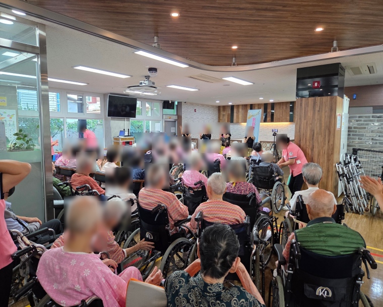 모두들 즐겁게 온사랑 공연을 보며 여가생활을 즐기셨습니다. 저희 시설은 문화적인 활동을 통해 어르신들이 심심하지 않게 하도록 초빙을 통해 다양한 문화체험을 하실 수 있도록 노력하고 있습니다.