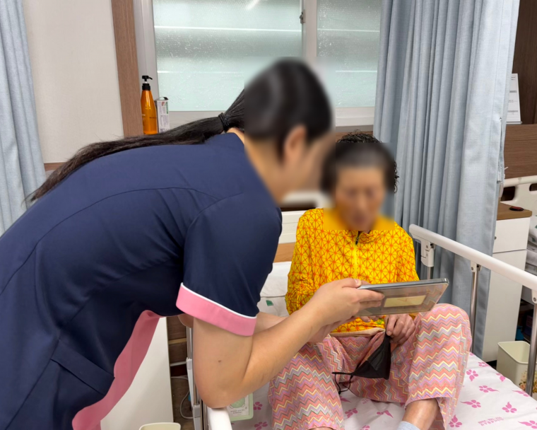 거동이 불편하신 어르신들을 위해 생활실에 직접 가서 재미있는 전래동화를 읽어드리거나 태블릿으로 보여드리고 있습니다.