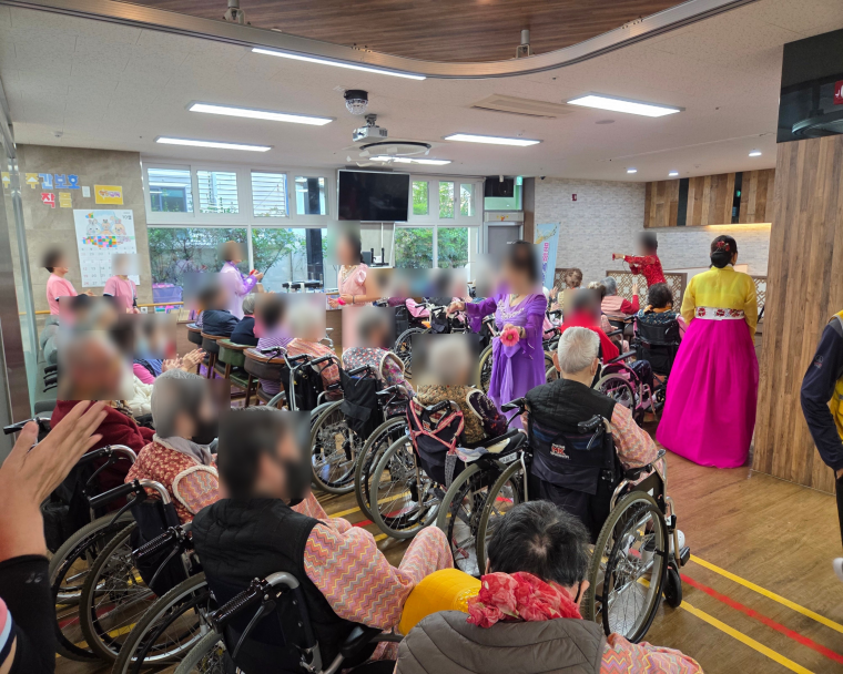 이번에 찾아주신 온사랑 공연단입니다. 모두들 즐겁게 온사랑 공연을 보며 여가생활을 즐기셨습니다. 저희 시설은 문화적인 활동을 통해 어르신들이 심심하지 않게 하도록 초빙을 통해 다양한 문화체험을 하실 수 있도록 노력하고 있습니다.